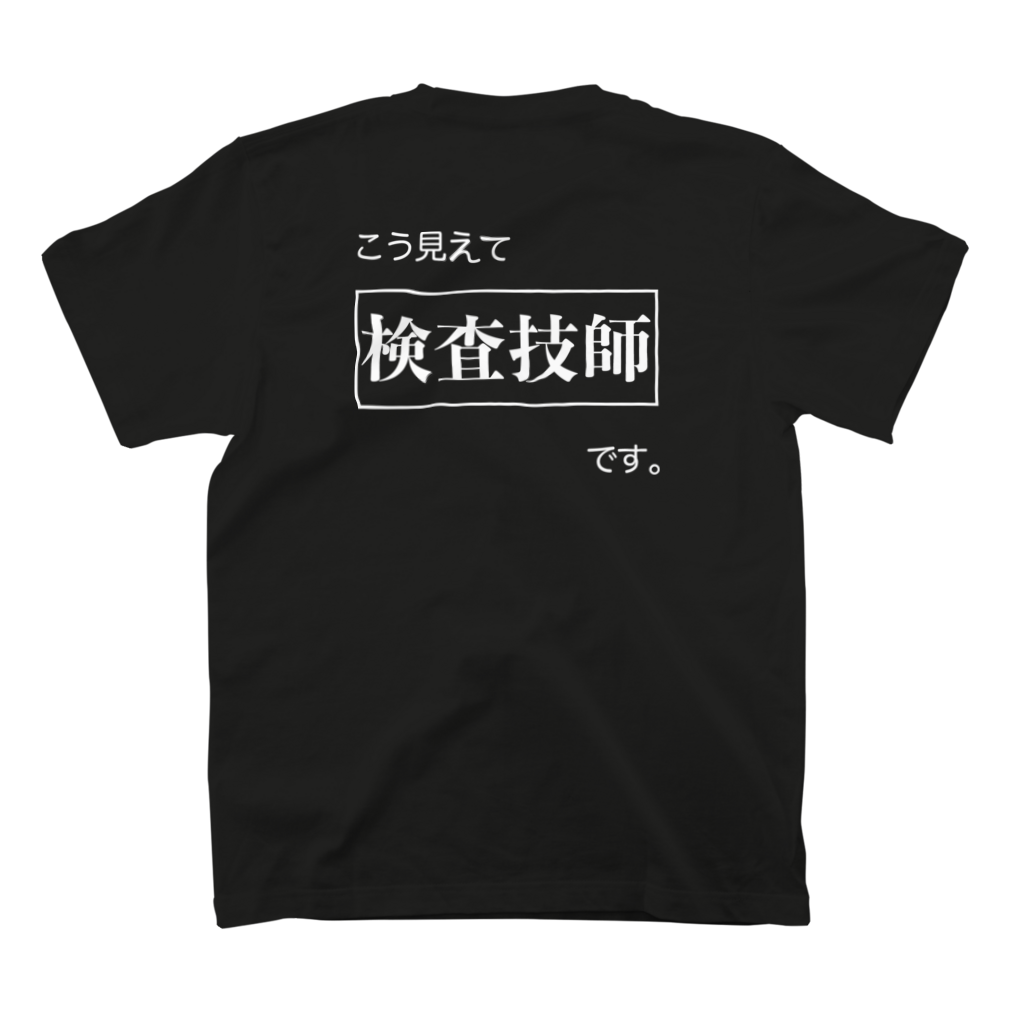 背中に大きく描かれた「検査技師」の文字と、「こう見えて」「です。」の一言。