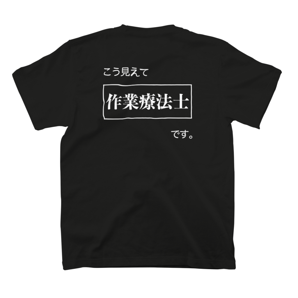 背中に大きく描かれた**「作業療法士」**の文字と、「こう見えて」「です。」の一言。